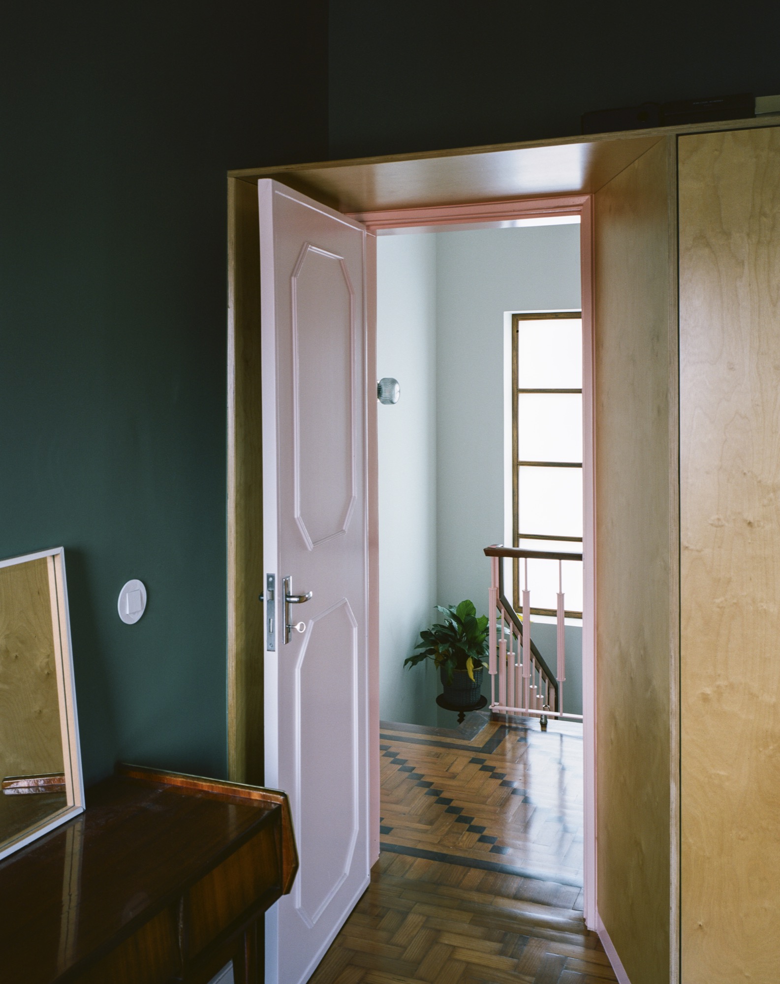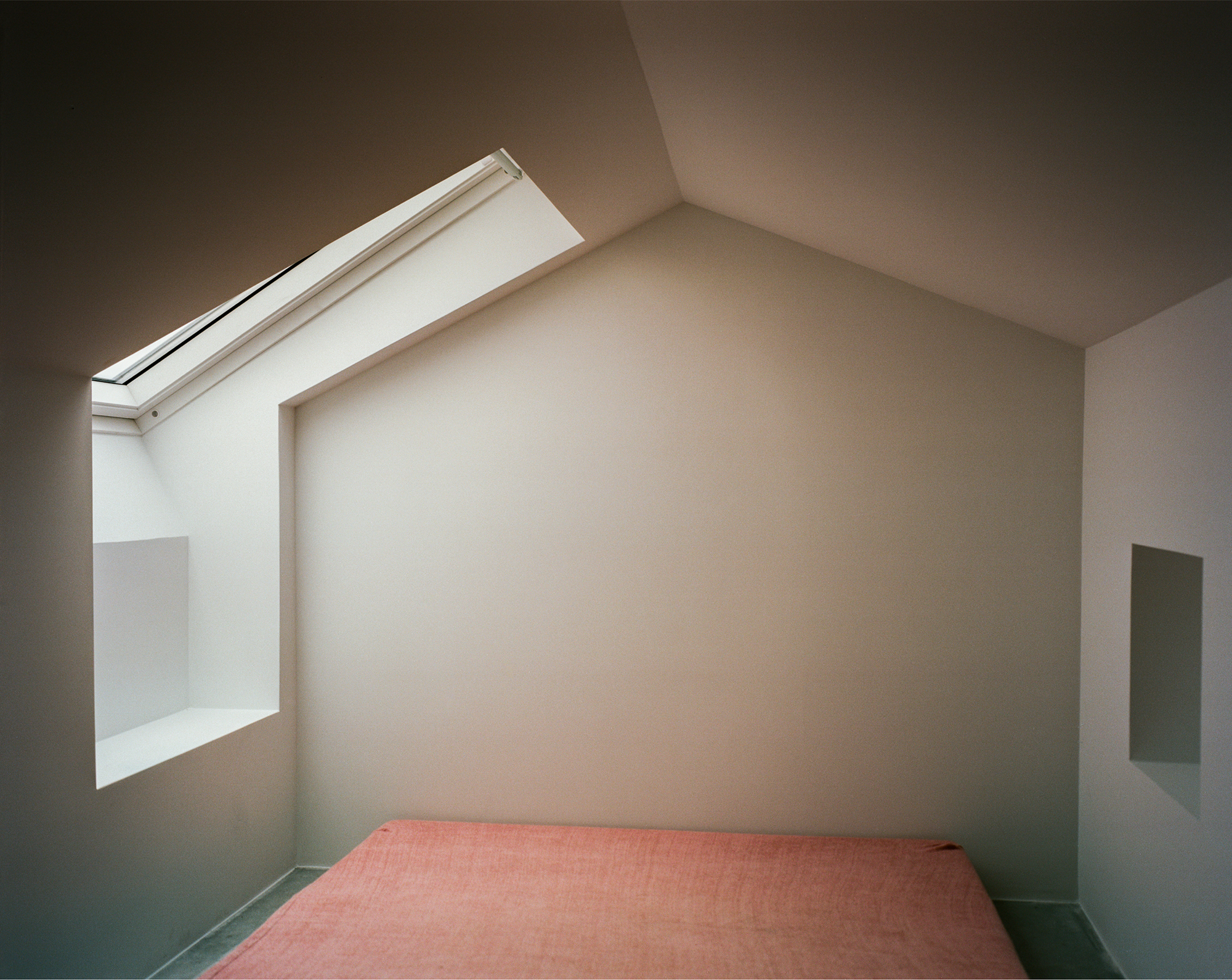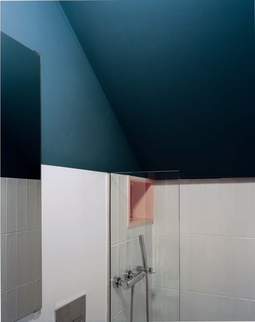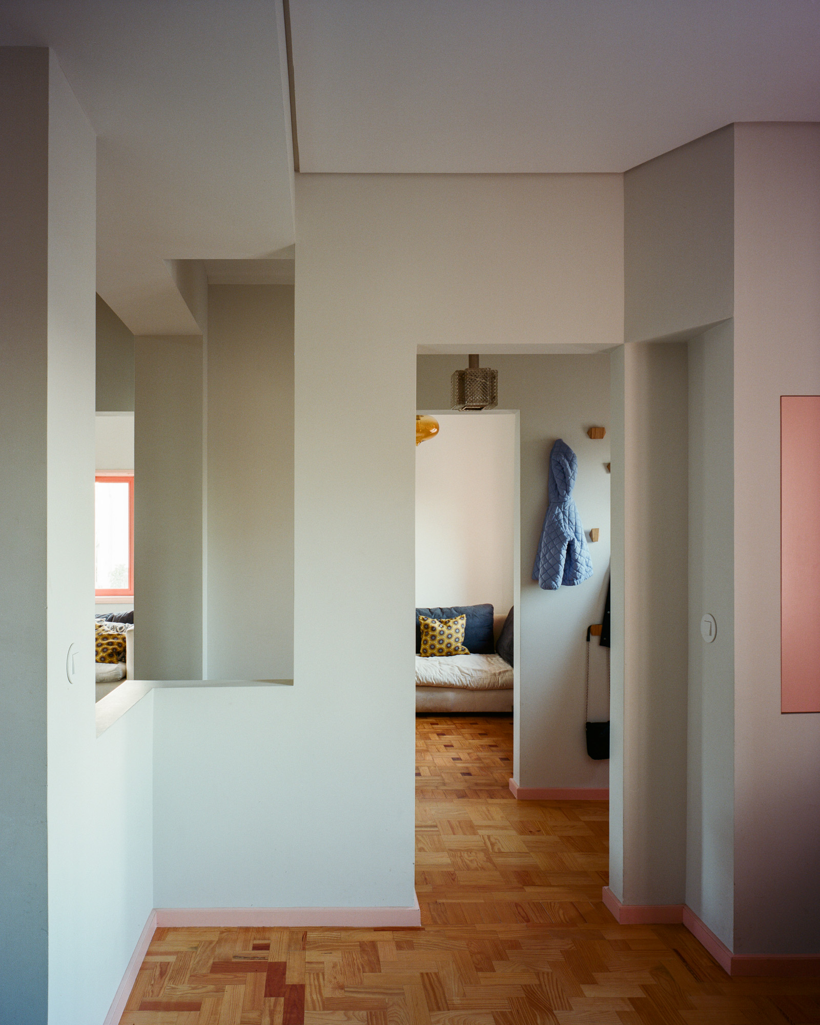 With the aim of keeping the house in tune with the forms of contemporary living, the economy of gestures in the existing building was extended into an experiment with new openings and colors. Inside, the demolition of a wall and occasional new openings between existing rooms reorganized the visual relations of the interior, in a kind of modest raumplan. In respect to the rear façade, its composition was complexified with two new (apparently) symmetrical windows. On the right, a porch was transformed into a new winter garden. On the left, the window unfolds into a bench, which in turn acts as a skylight to illuminate and ventilate a basement turned into workspace for a film-maker. In contradiction to the existing openings (both in shape and color), these two new lenses pointed at the garden proved to be important climate control devices, particularly during the winter. As for the colors, like everything else, they were carefully chosen so that changing almost nothing, everything could be different. Ultimately, the project aims to restore the house to an original state that has never existed as such.