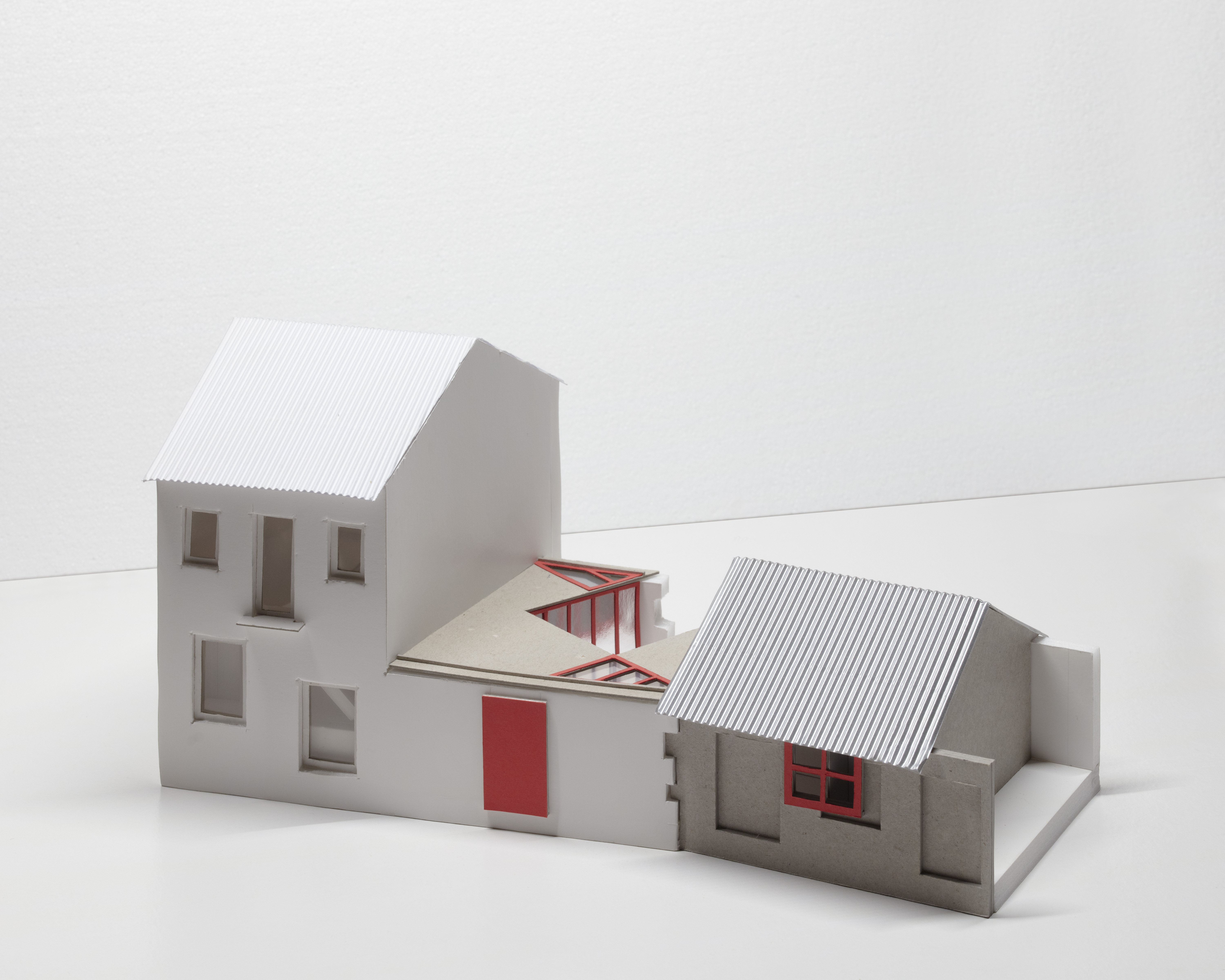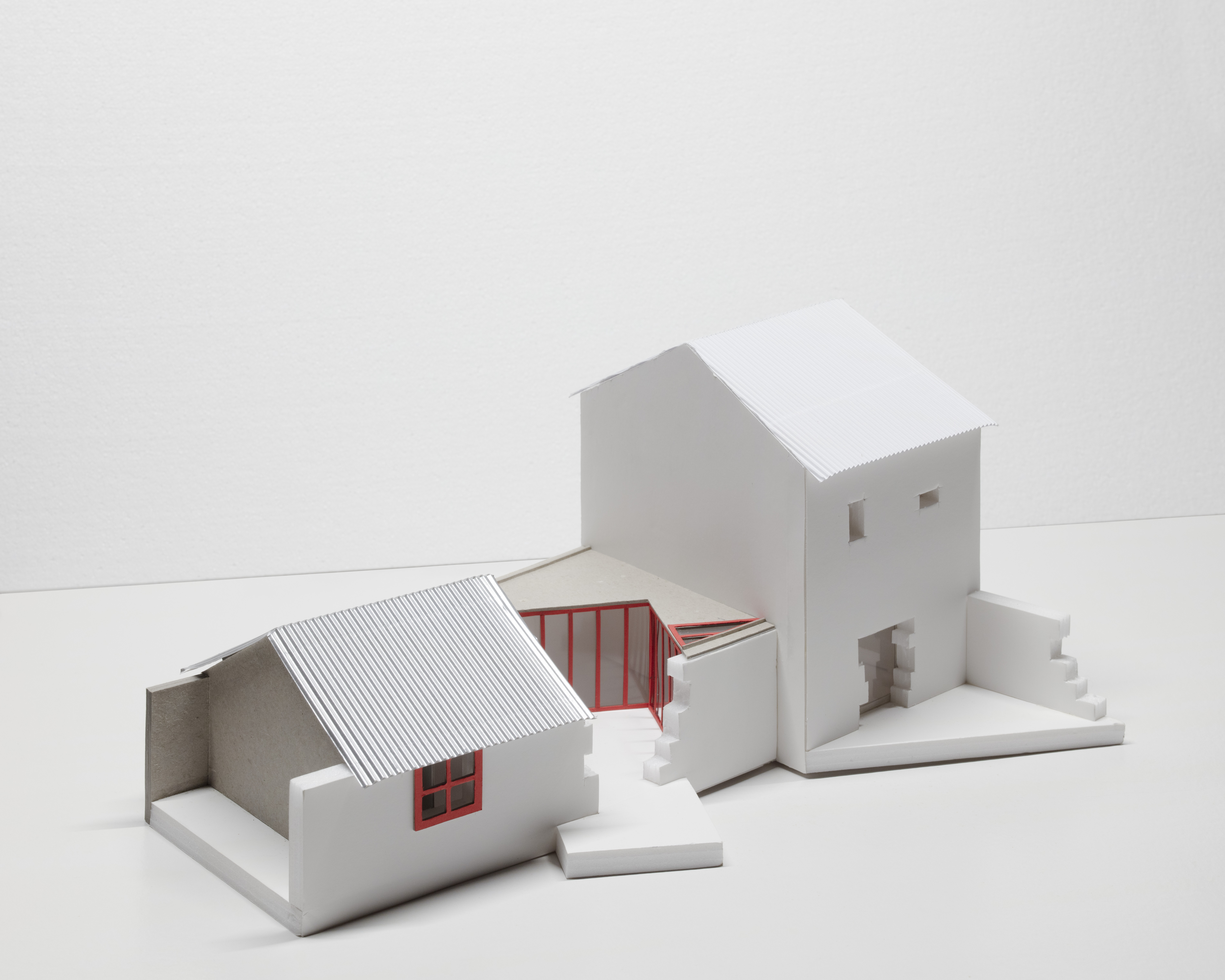 As far as color is concerned, the choice of red refers to a careful but unusual reading of the pre-existence. Although the wooden shutters and framings of the house were originally green, they were “painted” red by the wear and tear of time. Therefore, the choice of red no longer refers to the original color, but rather to the color “as found”, which happen to be a color we particularly appreciate. The whole project was an exercise on ambiguity.