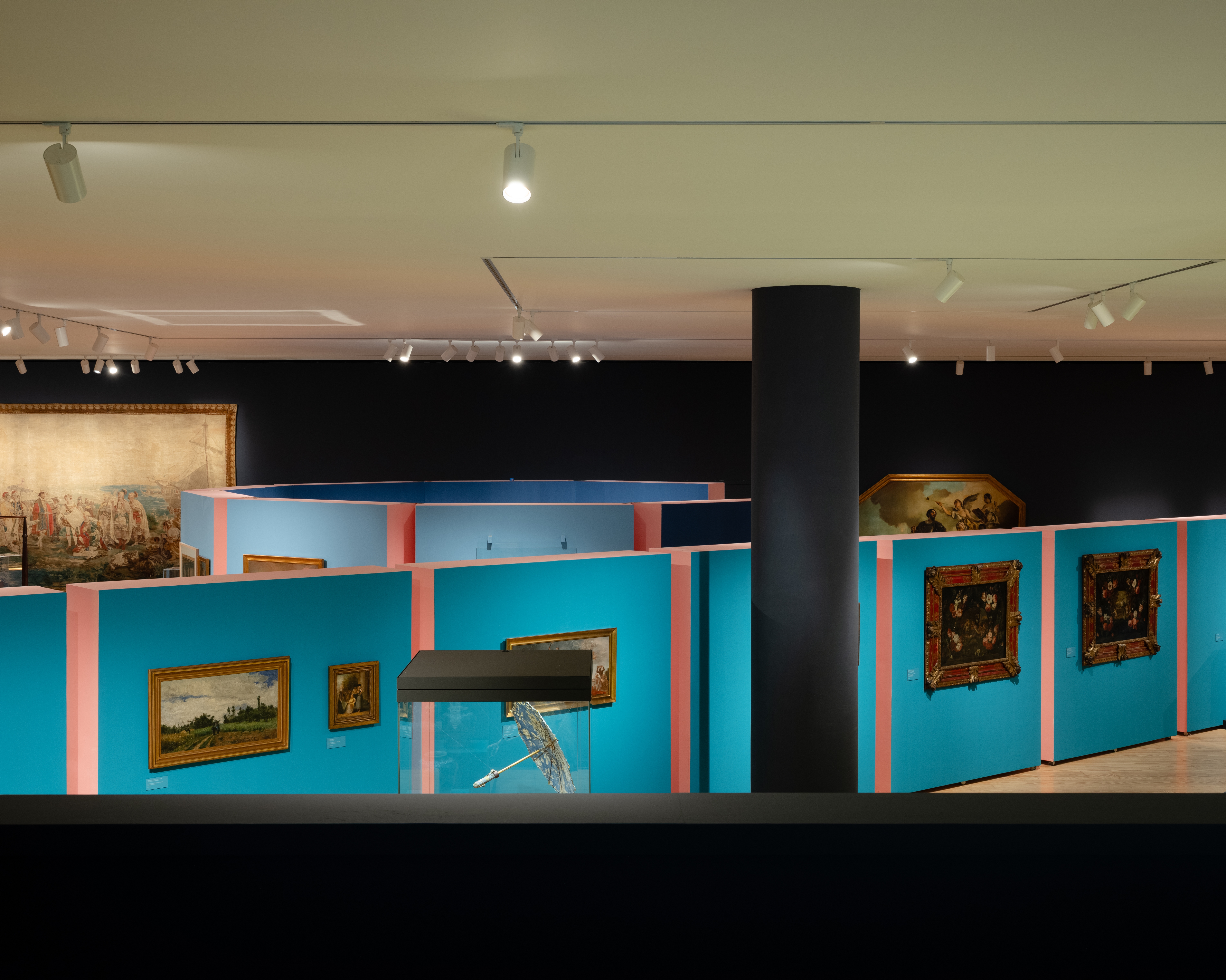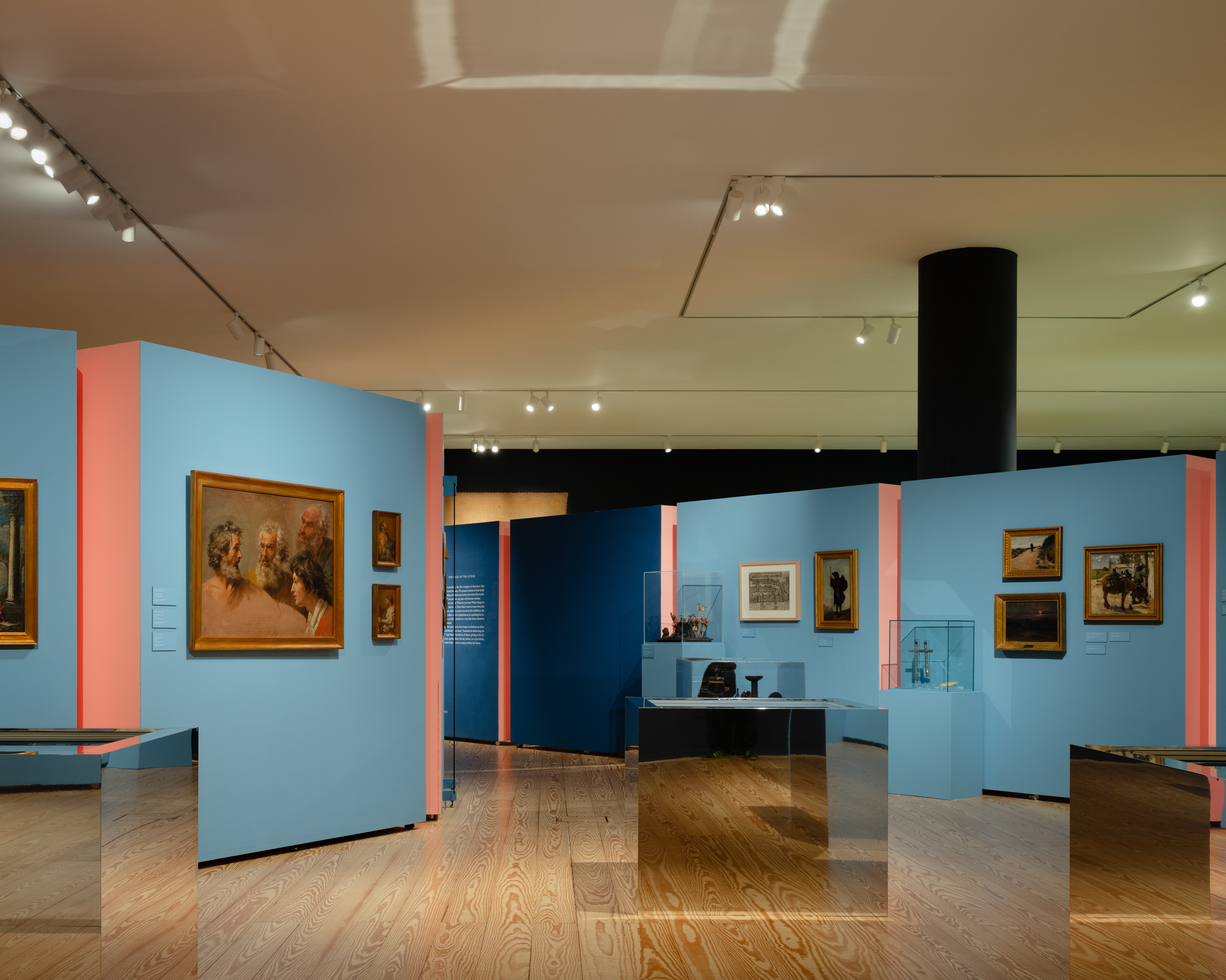 A cenografia desta exposição temporária no Museu Nacional Soares dos Reis, no Porto, parte de uma premissa simples: o aproveitamento do material expositivo concebido especificamente para esta sala do museu: para duzentas obras de arte, onze vitrines, oito plintos e dezanove paredes móveis.